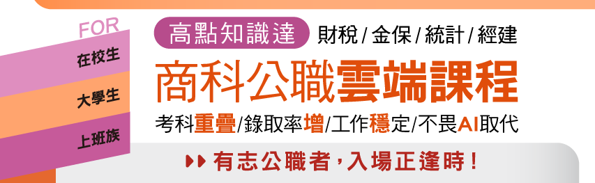 高考全修/專業科目、普考全修/專業科目、高考法制、高考財稅法務、高考司法行政 |